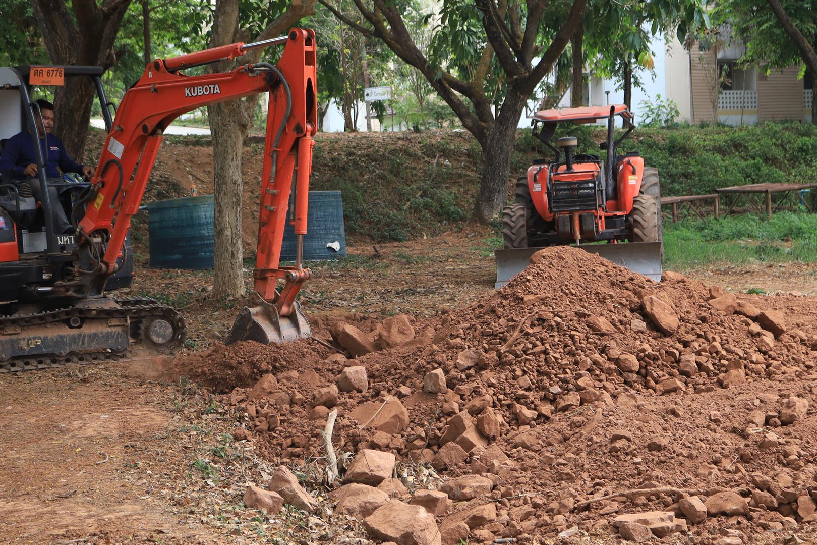 The Safety and Security, Division of Buildings and Facilities, has deployed a team equipped with machinery to carry out drainage pipe and channel dredging operations within the university from 22 April 2026 onwards, commencing with the dredging of the university's drainage channels surrounding the Wiang Phayao Building and the outdoor areas around the UP DORM residential buildings.